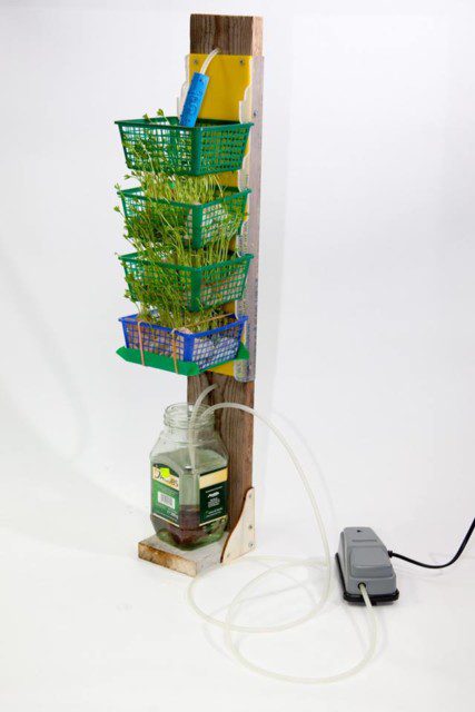 אופן פעולה: משאבת אויר שואבת מים מצנצנת בתחתית המערכת לראש המערכת, המים זורמים דרך כל המגשים ומספקים לנבטים תנאים טובים – מים וחמצן, מתנקזים חזרה לצנצנת ומוכנים לשאיבה נוספת.