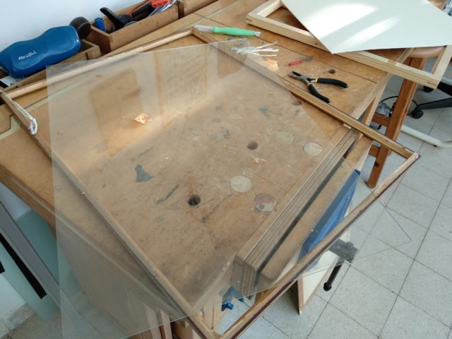 חשבתי שיהיה מעניין לנסות לזגג בפרספקס, חומר שלא יישבר ממכת פטיש עדינה.