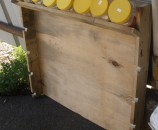 הפכתי את הדיקט וחיברתי את הקירות אליו בברגי סיבית. כך נראה המתקן עומד ללא מדפים.