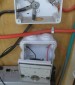 בארון החשמל של המערכת הסולארית, פתחתי את קופסת החשמל של הצמתים המתחברים ישירות לקטבים החיובי (בצבע אדום) והשלילי (בצבע שחור) של המצבר. מיקמתי את הקופסא של מד המתח מתחת לקופסא של הצמתים, והשחלתי את החוטים מהיציאות המתאימות. בדקתי לפני שיש לי מספיק חוט להגיע לצמתים המתאימים.