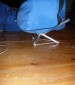 העברתי חבל במרכז החורים, וקשרתי אותו הדוק ככל שיכולתי. אז, בעזרת מעט ניחוש, החלטתי על המפתח הראוי, וקשרתי חבל נוסף בין כל שלושת הרגליים (כך שבבסיס של החצובה נוצר עוד משולש מחבל). חשוב – הדרך הנכונה להעמיד את החצובה היא בצורה רציפורקלית, שכל מוט, כביכול, נשען על מוט אחד, ומוט אחד נשען עליו (אני מציין זאת, כי יש עוד דרכים לפתוח את החצובה, אך זאת היא היציבה ביותר). ללא משקל זה עומד דווקא יפה, אבל עכשיו צריך לבדוק את זה גם על אמת.