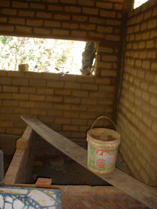 בפרוייקט המדובר לא אנחנו הכנו את הלבנים, אלא שני חברה מקומיים. לא הייתה זאת הפתעה לראות כיצד הם מכינים את הלבנים – ממש שם, בחצר הפרוייקט פשוט מורידים את השכבה הראשונה של העלים ומתחילים להכין עיסה ללבנים בלי להוסיף חול או קש, ממש מאותה האדמה, ותוך כדי מתחיל להיווצר בור (אותו הבור שאתם רואים בתמונה מצד שמאל).