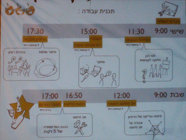 מכאן ניתנו לכל קבוצה כ-45 דקות להגדרת הבעיה. בעיקר גילינו שאנחנו לא מסכימים על הנחות היסוד, ובכל זאת לאחר זמן קצר זה נתכנסו להציג את הגדרת הבעיה שלנו בשתי קבוצות, אחת מול השנייה.