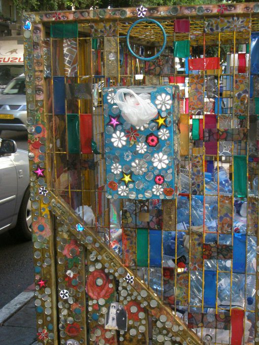 קצת שונה – מתקן לאיסוף בקבוקים בצפון רחוב דיזנגוף בתל-אביב התחפושת באדיבות בעלי חנויות יצירתיים