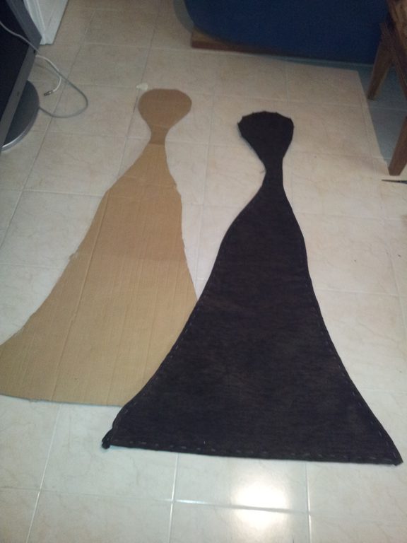 חשוב שהבד שיחזיק אותנו, זה שימתח על הכיסא עצמו, יהיה חזק מספיק כדי לעשות זאת. את הבד שבחרנו חתכנו לפי צורת הקרטון, אך השארנו 5-7 ס”מ שוליים שנתפרו חזרה על הגבול הסופי של הבד, וכך יצרו שוליים עבים יותר. השוליים העבים נוצרו כדי לתת יותר כוח לבד מסביב לכל הבד שם יגיעו טבעות הקשירה.