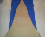 את המדידה עשינו באמצעות חתיכת קרטון אותה קיפלנו פחות או יותר בצמוד למשטח הכיסא, עניין לא פשוט מכיוון שהכיסא מורכב מלא מעט קימורים. הקרטון לא אוהב כל-כך להתכופף כך, ובכל זאת. שרטטנו את הצורה על הקרטון, חתכנו בזהירות ומדדנו שוב, עד שההתאמה בין הכיסא לקרטון סיפקה אותנו.