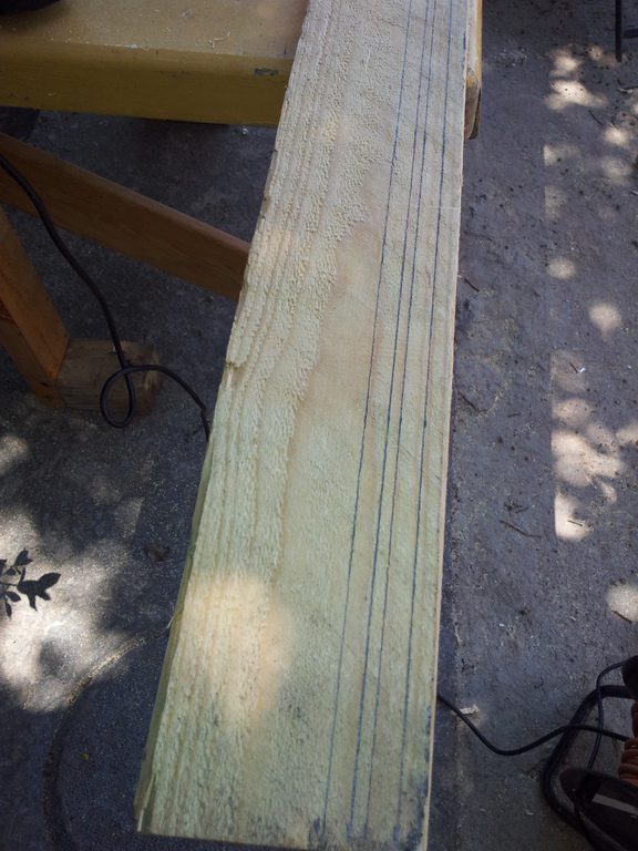 לשמחתי הרבה, מישהו זרק ארגז עץ גדול מאוד ממש כמה עשרות מטרים מהבית, ויכולתי לנצל את הקורות הארוכות ליצירת המסילות. את שתי המסילות עשיתי באמצעות רוטור. כל דלת תזוז על מסילה נפרדת. רוחב כל מסילה הוא סנטימטר (קצת יותר מעובי הדיקט לדלתות) והמרווח בין שתי המסילות הוא סנטימטר גם כן.