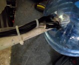 חיתכו את קצה התחתון של הצינור השקוף באלכסון כדי למנוע סתימה שלו כשהוא נוגע בקרקעית מיכל האגירה. וודאו שקצה הצינור השקוף לא תעקל. אם הוא קצת עקום, תשחקו איתו קצת עד שיתיישר.
