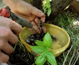 חוררו את העציצים בעזרת המקדחה מכל הכיוונים, אך אל תגזימו אנחנו לא רוצים שמצע השתילה (טוף) יפול החוצה, אלה רק שיהיה מעבר חופשי של מים לכל בית השורשים וניקוז טוב של העציץ.