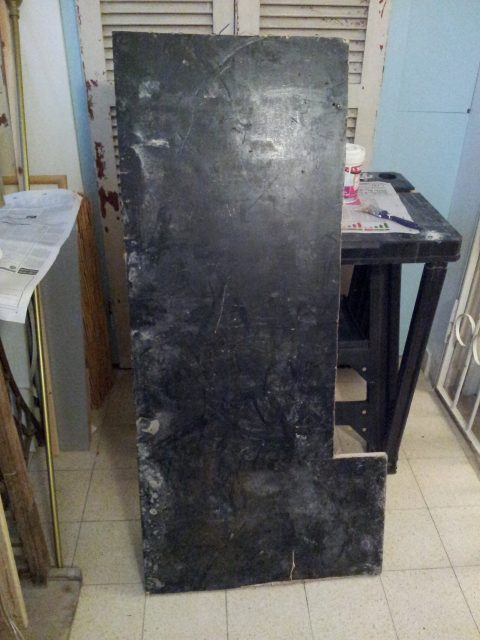 היה עוד ניסיון למחזר קרשים בחתך 2/10 שליאוניד השיפוצניק השתמש בהם כסרגלים לטיח. שיוף קל השאיר בהם טקסטורה וכתמי צבע יפהפיים. קצת נסחפתי עם האותנטיות כאשר ניסיתי לחבר את הקרשים במסמרי בנין חלודים, מה שהביא לתזוזת הלוחות בעת החיבור, ולשבירת חלק מהם. מומלץ להישאר עם ברגים ועם קדיחת קדח מוביל לכל בורג. אתר “קרשים” עושה דברים נפלאים עם חומרים כאלו, מניח שאנסה עוד בהמשך.