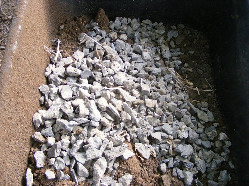 מעל הבידוד הוספתי מסה תרמית. אני הכי ממליץ על חול מחצבה בזלתי או חצץ בזלת מעורב באדמה, אנחנו קוראים לזה קוב תרמי. לי פשוט יש מחצבת בזלת קרוב לבית. מה שחשוב זה שהחומר יהיה כבד, כלומר – אוגר חום. קל אומר מונע מהחום לעבור. חצץ בזלתי זה אחד החומרים הכבדים.