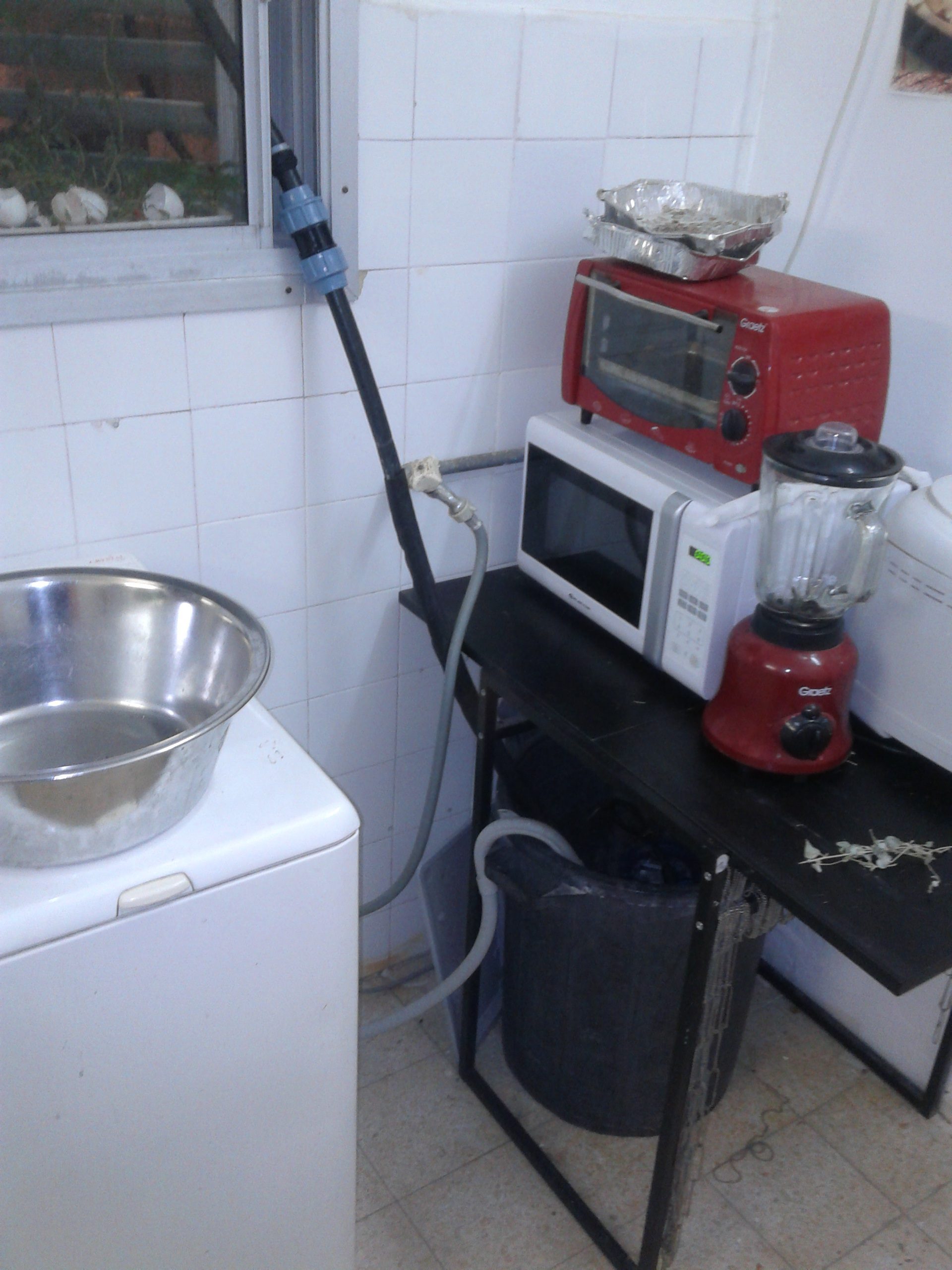 בחרתי שלא לנתק את קו המים הנקיים שנכנס מדאגה לכך שיגמרו לי המים האפורים ומכיוון שזוהי דירה שכורה. אך בכל זאת התקנתי ברזון קטן על הצינור של המים הנקיים אשר מאפשר לי “לנתק” את הזרם. למרות שהרכיב זול והשתמשתי במלא טפלון, תמיד יש נזילות וכאב ראש (אך בסוף זה מסתדר).