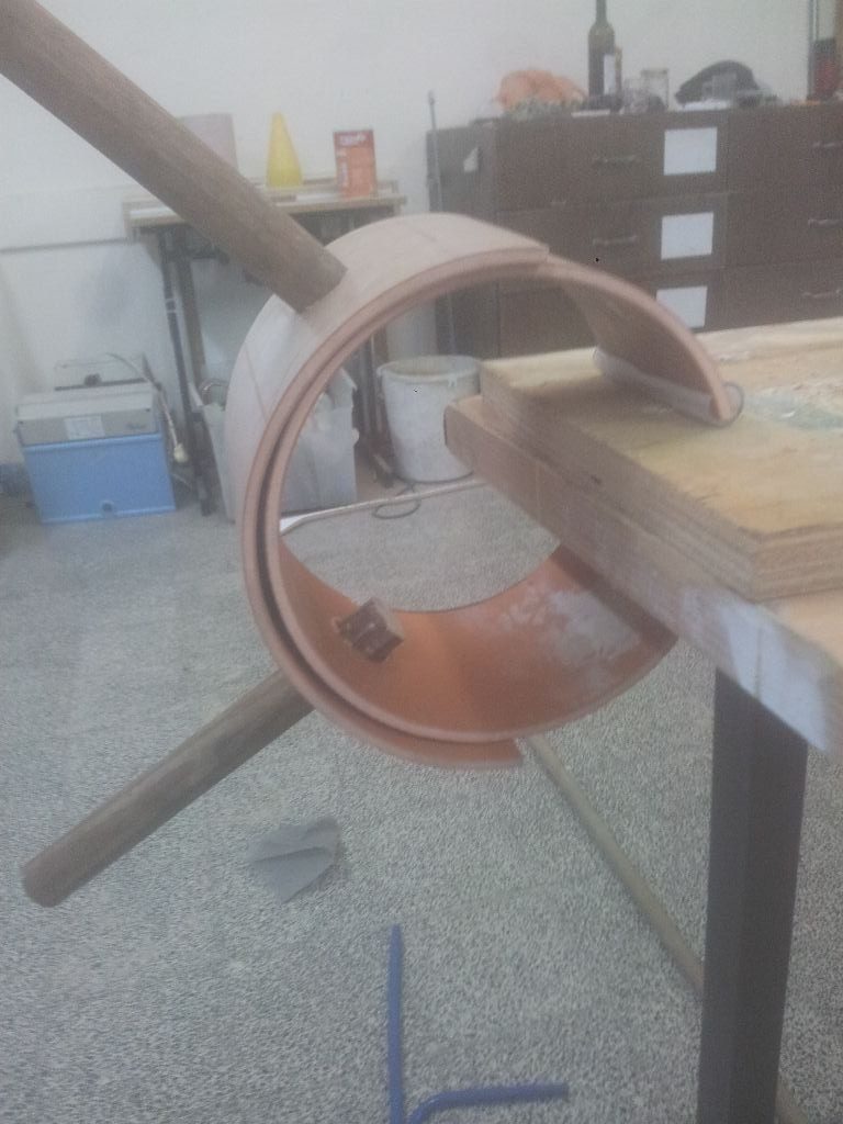 היה לי די ברור שבקוטר כזה, עם התנגדות כמו שאני מצפה לה, דיבל עץ יישבר בקלות, לכן מההתחלה החלטתי להשתמש במקלות מטאטא (עובי של 2.5 ס”מ, בדרך כלל). על שפת החתך, כדי שהPVC לא ישאיר סימנים על החומר אותו הוא קולב, השחלתי צינור שקוף העשוי PVC רך (כן, כן, זה גם PVC…), בקוטר פנימי של 10 מ”מ.