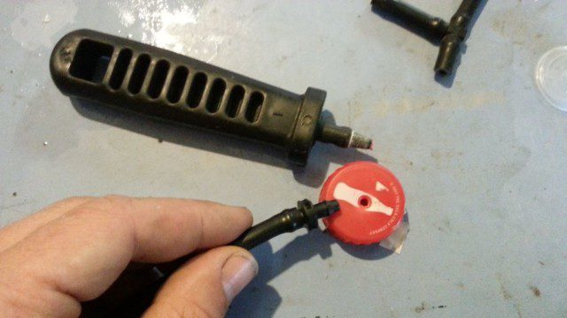 בקבוק איסוף נקז: עושים חיתוך ישר באמצע הבקבוק. צריך להיות באותו גודל או קצת יותר גדול מבקבוק ההשקיה, מחבר 7 ממ לתוך הפקק מחובר לצינורית וברזון יעזרו לנו לנתב את המים לאן שנרצה (למים אפורים או להשקיה חוזרת) כדי למנוע סתימות ניתן להוסיף לבקבוק הזה רשת זבובים ו/או טוף 4-8 ממ שיתפקדו כפילטר.