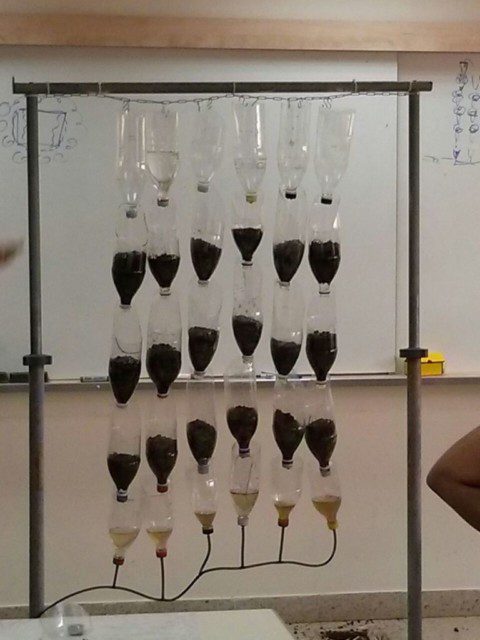 בקבוקי גידול: באותה השיטה של חיתוך אלכסוני וחיבור עם אזיקונים כמו במדריך הקודם ובחוות חלון (השיטה הזאת עובדת מצויין! – מצליחה להחזיק עמודה של 11 בקבוקים מלאים במצע שתילה וצמחים). כדי לוודא שלא יטפטף החוצה ניתן לחתוך את הפקק בצורה של בית שהשפיץ פונה אחורה.