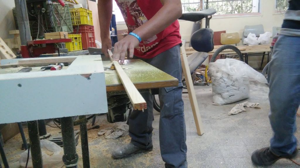 את הפינה הכנו על שולחן הראוטר מפרופיל עץ מרובע של 2×2. זה הכלי הכי מסוכן בסדנא כרגע, אז השקעתי תשומת לב יתרה בלדאוג שאף אחד לא מעיף אצבע.