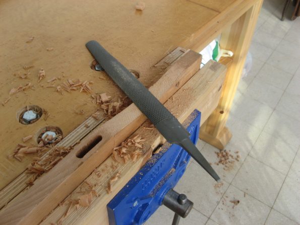 בצילום הבא נראית עבודה לא נכונה עם המפסלת, לקח לי זמן לתפוס את הפרינציפ – צריך להתחיל מהקצה וללכת לכיוון המרכז כאשר לאחר הכניסה הראשונית לעץ, מטים את המפסלת בזווית חדה הרבה יותר. אם אתם יודעים להשחיז מפסלת ומיומנים וזהירים מספיק כדי לעבוד עם כלי חד כזה, ניתן ללמוד את הטכניקה מסרטונים בהם פול סלרס בונה מסור כזה, גגלוPaul Sellers Framesaw :